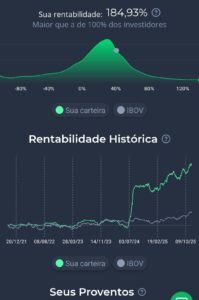 - Comparação direta da carteira com o Ibovespa e o CDI.