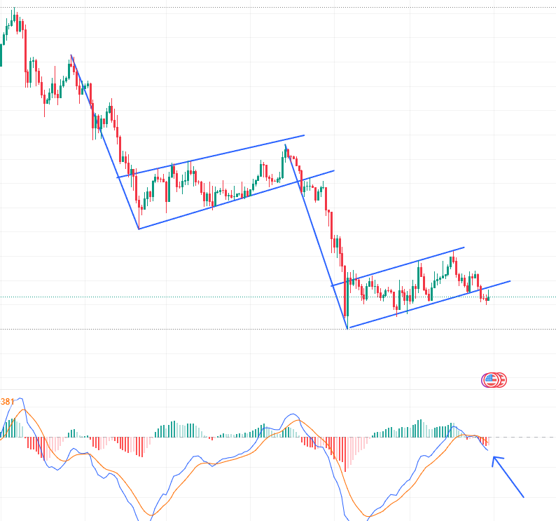 Observando o gráfico diário, o Bitcoin vem formando um padrão conhecido como bandeira de baixa. Esse tipo de estrutura costuma aparecer após movimentos de queda mais fortes e pode indicar uma possível continuação da tendência negativa.