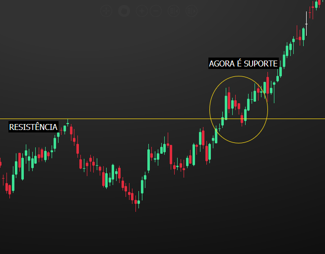 A bipolaridade acontece quando o mercado inverte os papéis de suporte e resistência.